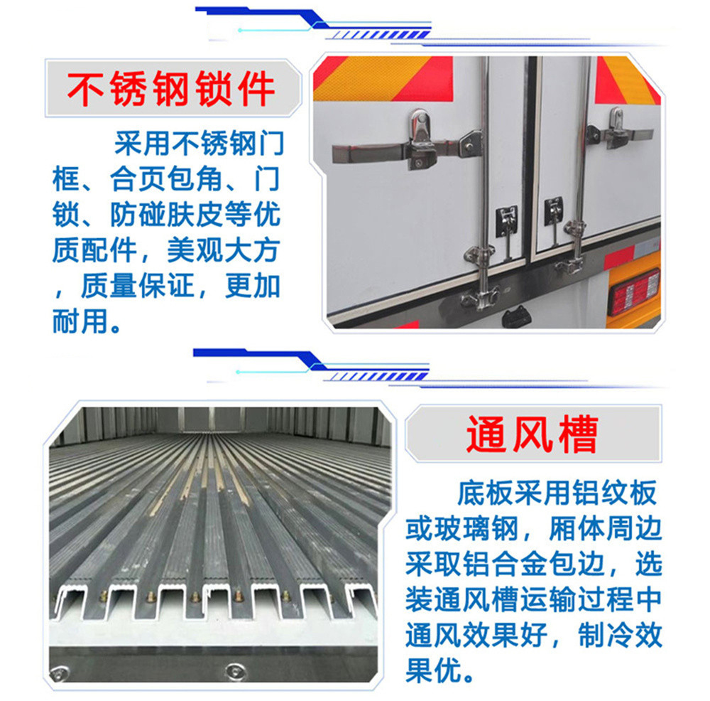 | 其他 | 1.側護欄總成的材料采用Q235B;連接方式:用螺栓連接后下部防護裝置材料為Q235,連接方式為螺栓連接,后部防護裝置斷面尺寸:100mm(斷面高度)×50(斷面寬度),離地高度為430mm,480mm。2.車廂頂部封閉,不可開啟;3.可選裝其它功率相同制冷機組(前置或底置),側門為選裝件,車廂右側和左側均可選裝側門,選裝單側門或雙側門或側面不開門,選裝普通側門,對開側門,聯開側門,側拉門等側門形式,側門和后門選裝明門杠或暗門杠的門鎖;4.ABS型號 VIE ABS-II 廠家:浙江萬安科技股份有限公司;ABS型號 CM4XL-4S/4M 廠家:廣州瑞立科密汽車電子股份有限公司;5.D30TCIF1發動機最大凈功率120kW,對應油耗值為11.5L/100km,SC28R150Q6發動機最大凈功率107.5kw,對應油耗值為11.5L/100km.;6.制冷機可裝在底盤車架上;7.選裝無導流罩;8.冷藏車類別:F類;9.選裝不同外觀的導流罩;10 .隨底盤選裝駕駛室前圍面板和格柵,選裝前部燈具,選裝后視鏡. | ||